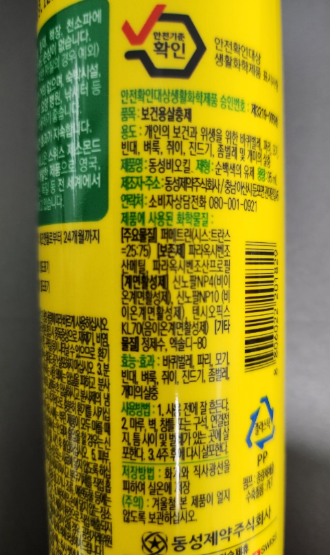 냄새: 정말 무취에 가까워요! 다른 살충제처럼 코를 찌르는 냄새가 없어서 아이가 있는 집에서 사용하기 좋았습니다.