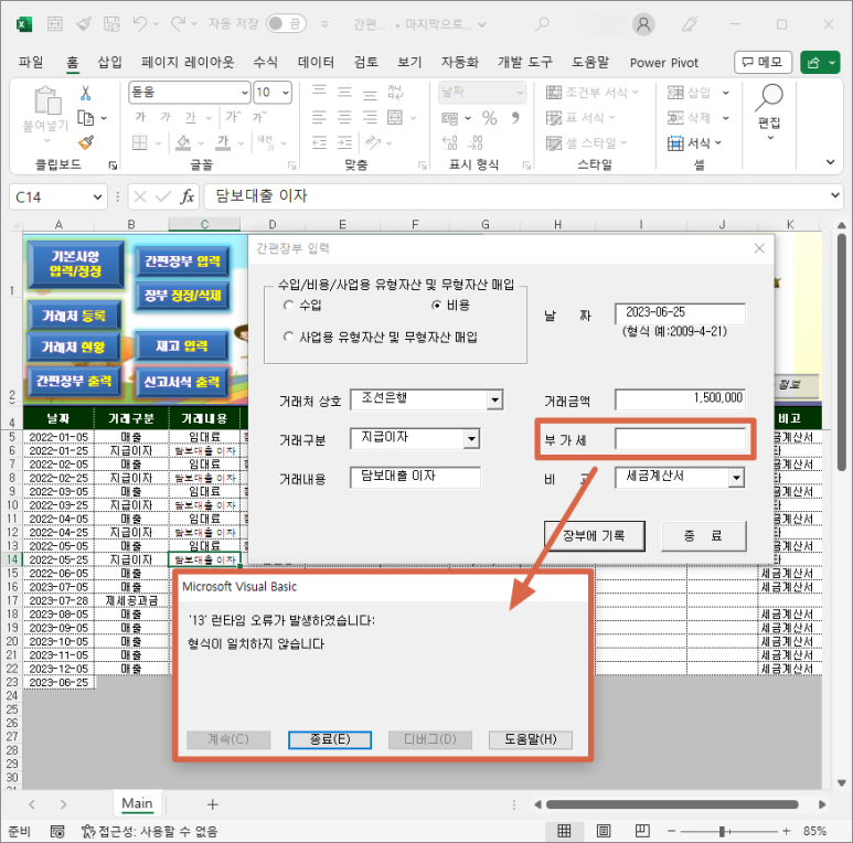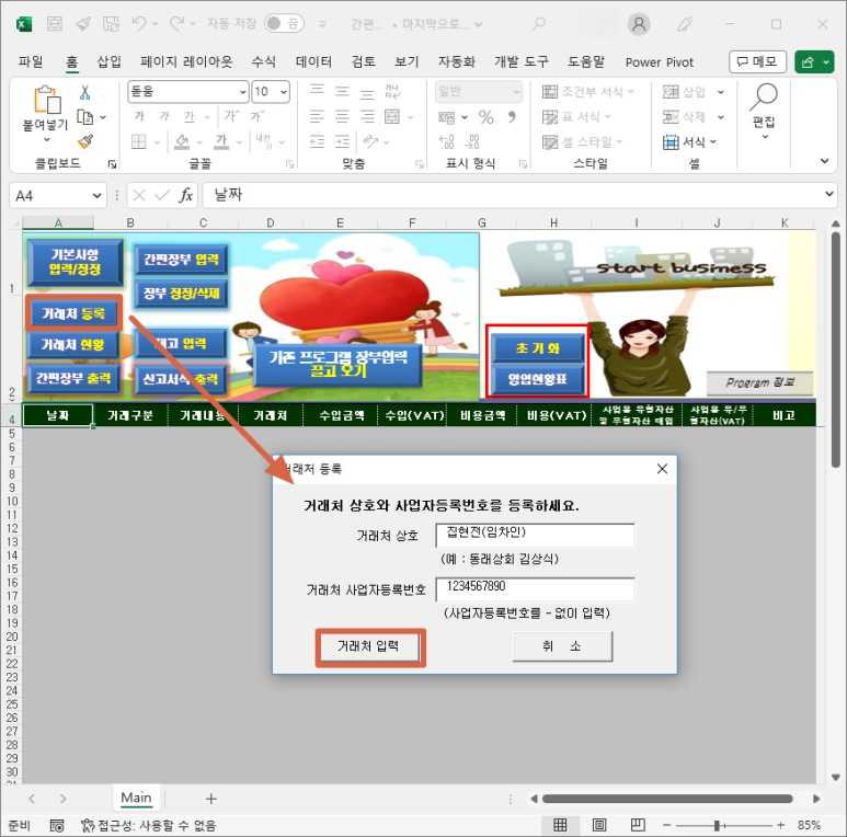 2. 간편장부 프로그램 열기