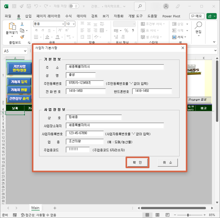 사업장정보는 사업자등록증에 있는 정보를 넣으시면 됩니다.