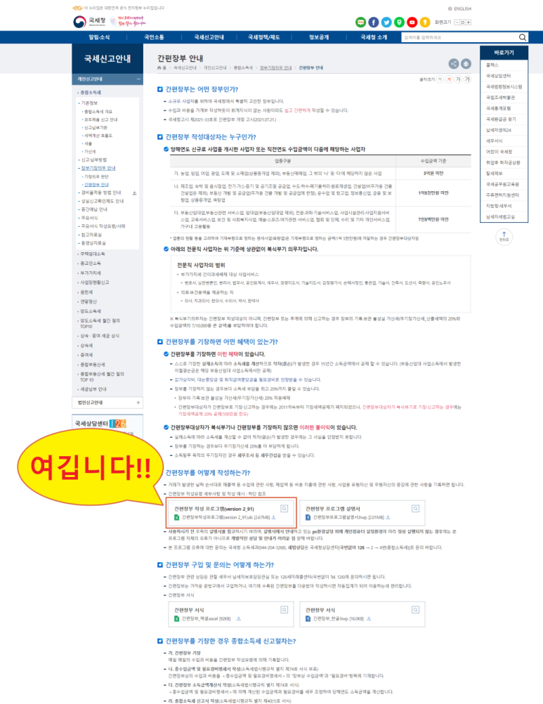 아래 링크로 가시면 중간쯤에서 간편장부를 다운받으실 수 있어요.