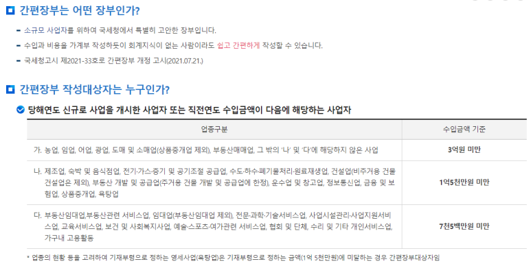 간편장부가 어떤 것인지에 대해서는 국세청 홈페이지에 자세히 나와 있습니다.