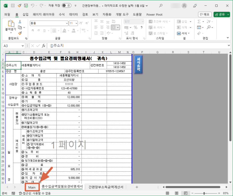 다시 메인으로 돌아갈 때는 맨 밑에 있는 "Main" 탭을 클릭하시면 됩니다.