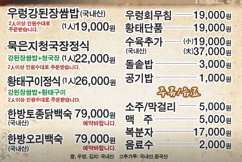 - - 철판오리불고기 쌈정식 등