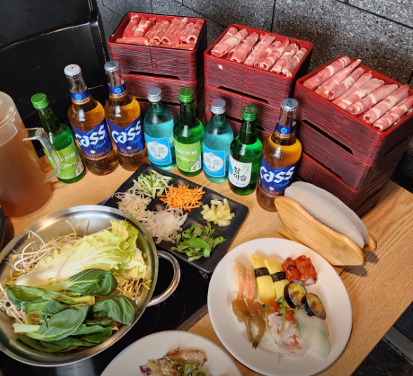 더바른샤브는 상무지구에서 가장 인기 있는 샤브샤브 뷔페예요. 신선한 야채와 고기를 무제한으로 즐길 수 있어 가성비가 훌륭하답니다.