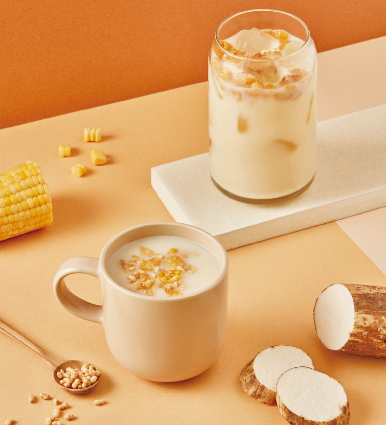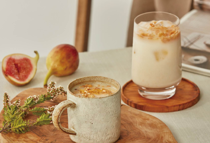 맛은 정말 고소하고 부드러워요. 연한 호박즙과 비슷한 느낌이라고 할까요? 너무 달지 않으면서도 은은한 단맛이 있어 아침 공복에 마시기에 딱 좋습니다. 무엇보다 제가 가장 좋아하는 부분은 콘푸레이크와 견과류 토핑인데요, 이 바삭한 식감이 차에 풍미를 더해줍니다. 🌰