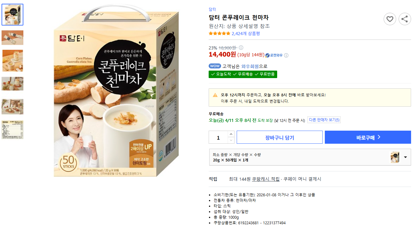 담터 콘푸레이크 천마차를 가장 합리적으로 구매하는 방법을 알려드릴게요: