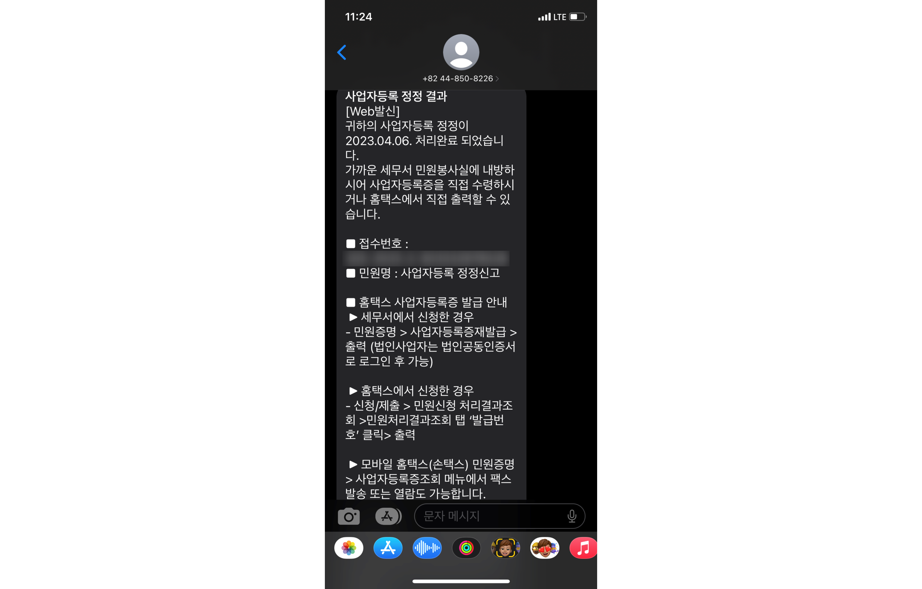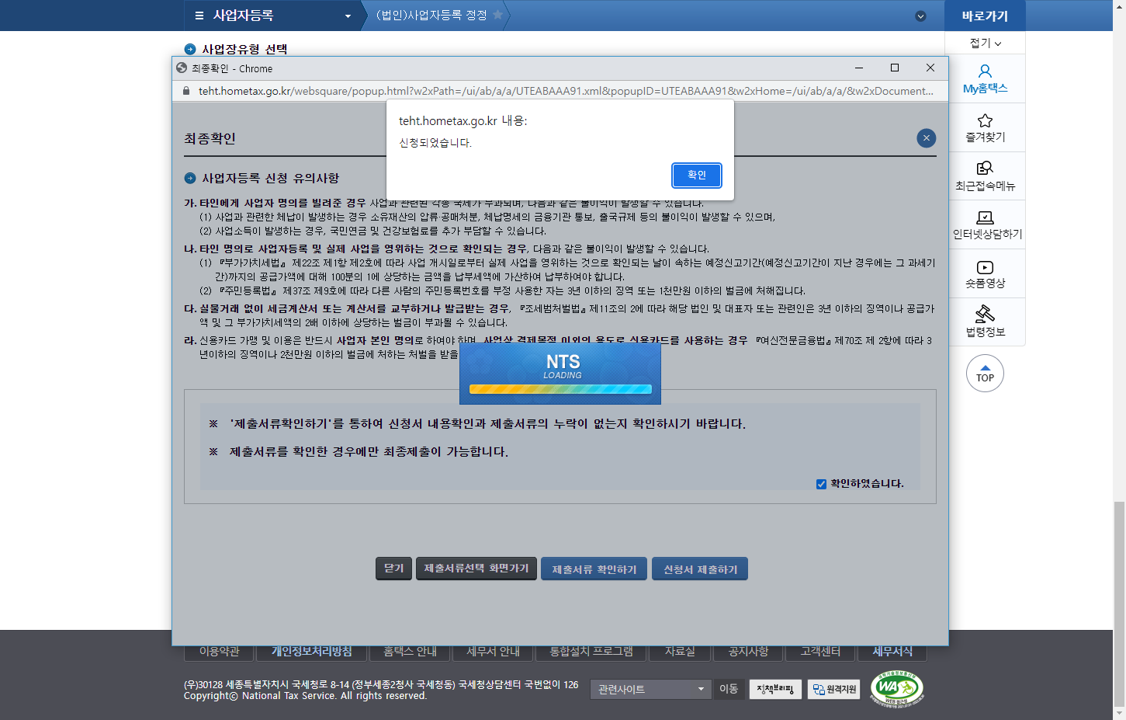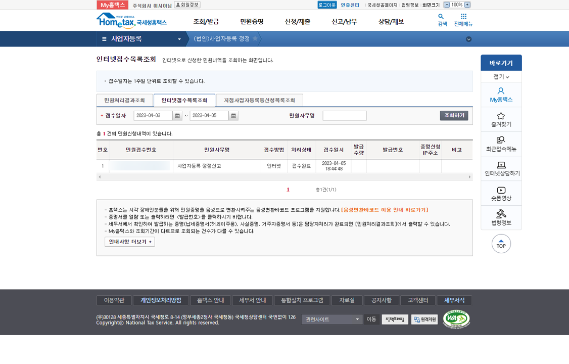 저는 홈택스로 접수한 다음 날 처리 완료되었다는 문자가 오더라고요.