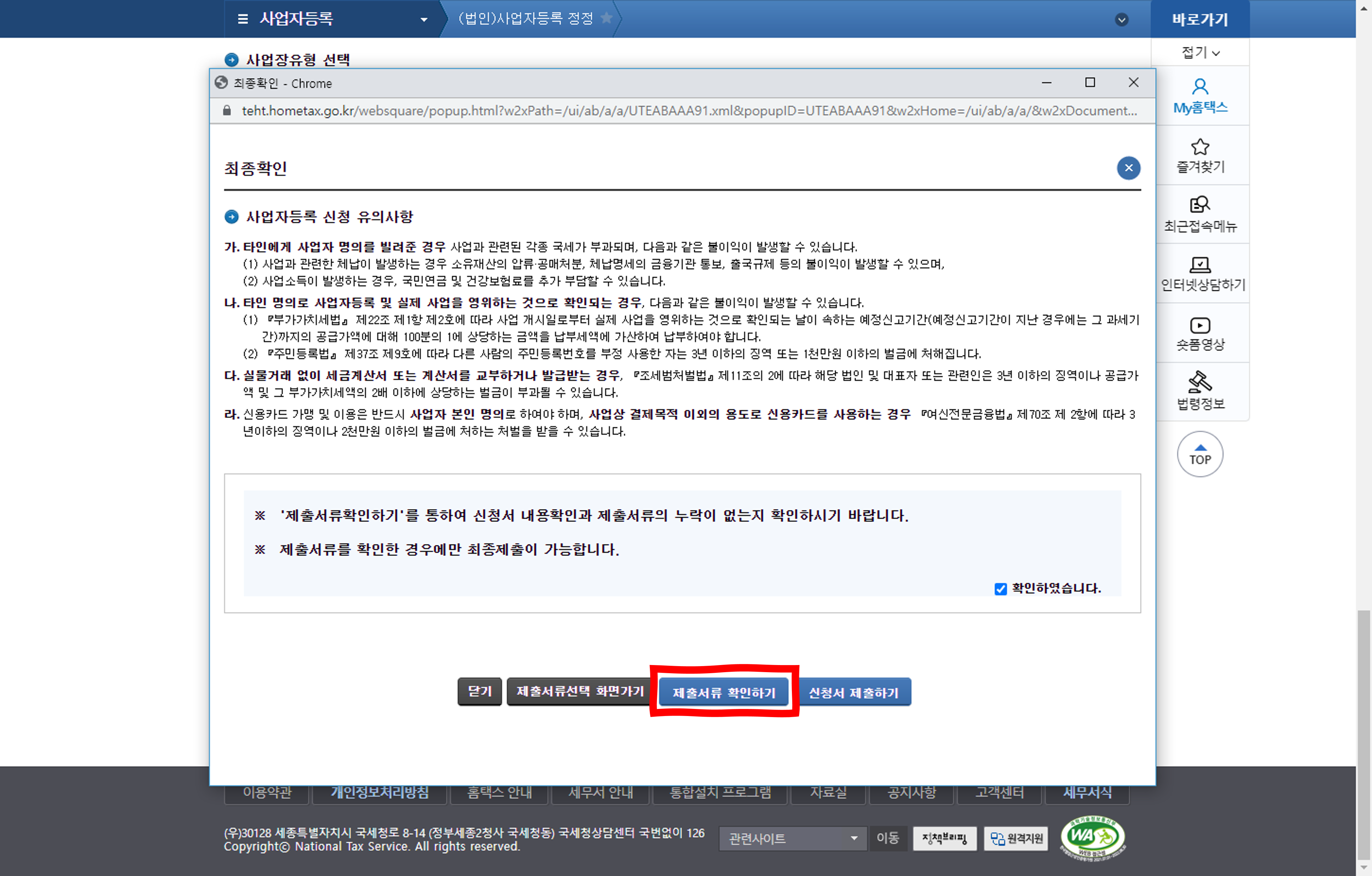 여기까지 오시느라 고생하셨어요^^ 신청서를 제출하기 전에 서류가 제대로 등록되었는지 확인해봐야겠죠?