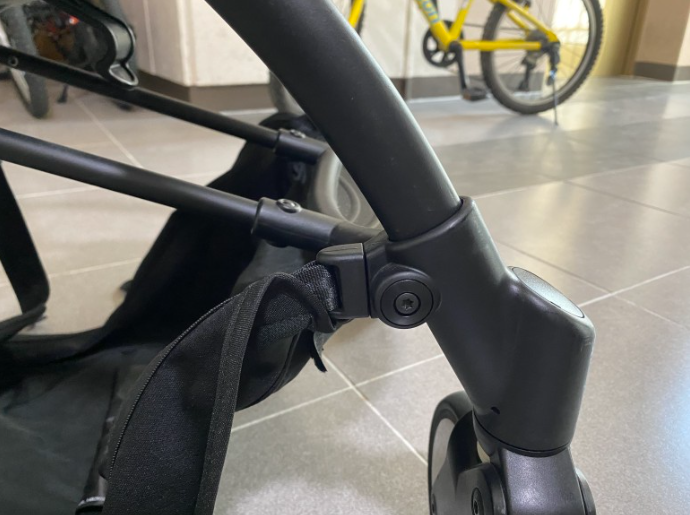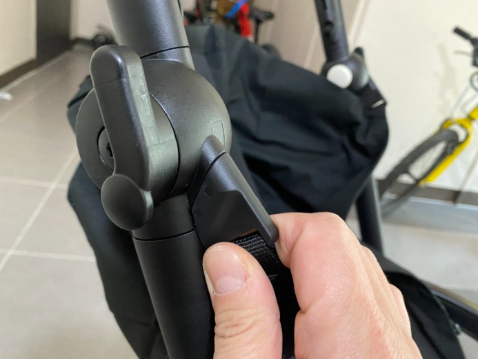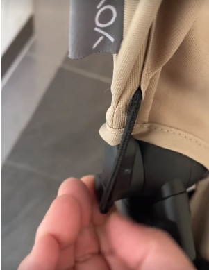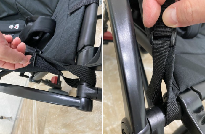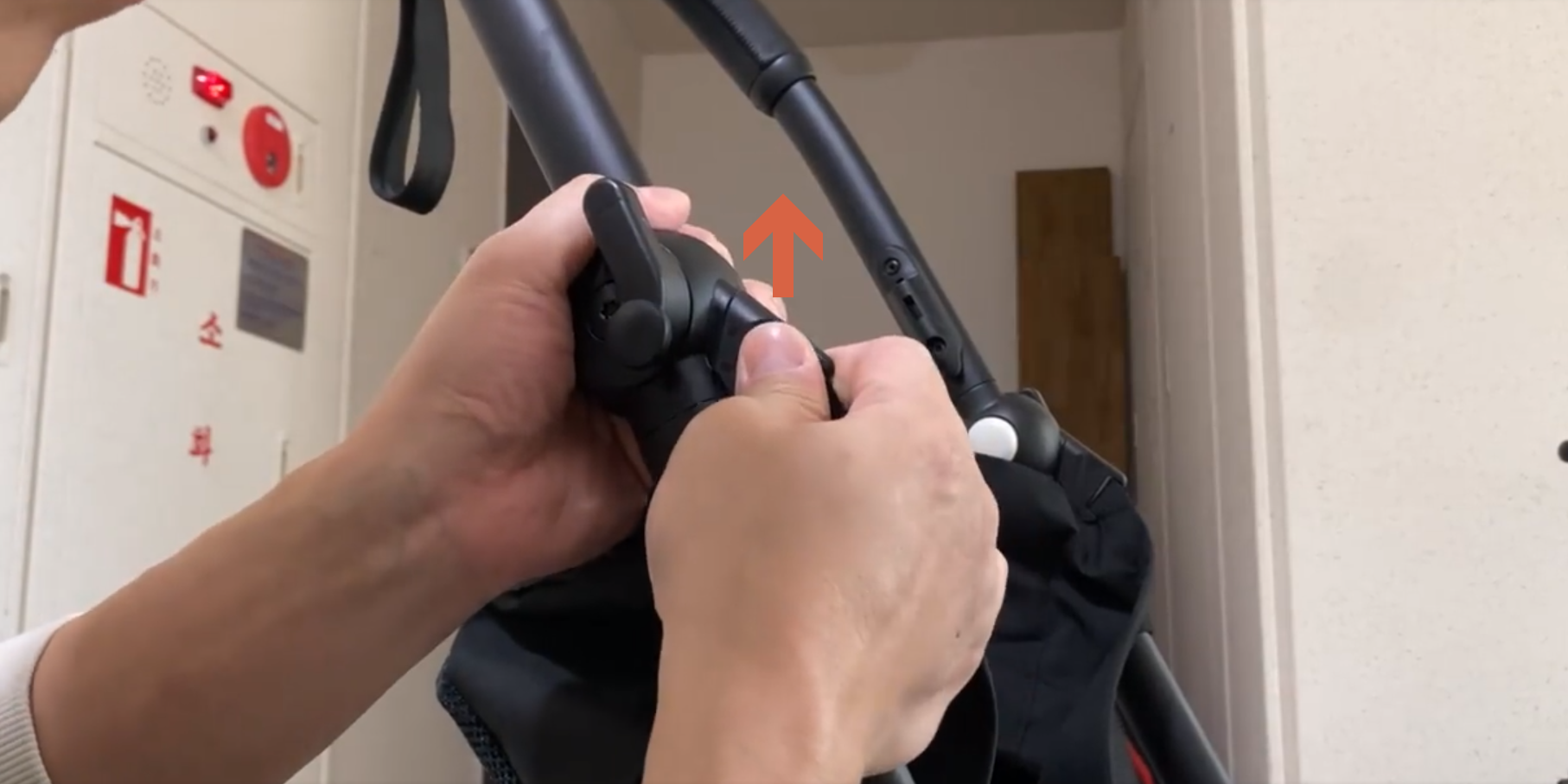 마지막으로 시트와 유모차 뼈대를 고정시키는 핀이 있는데 이걸 빼주면 시트 탈거가 끝납니다.