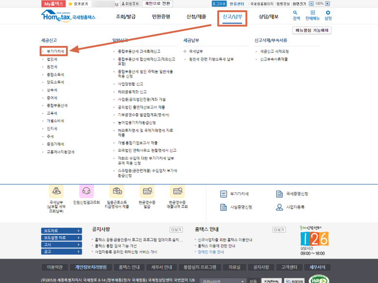 3. 부가세 신고메뉴로 들어가기