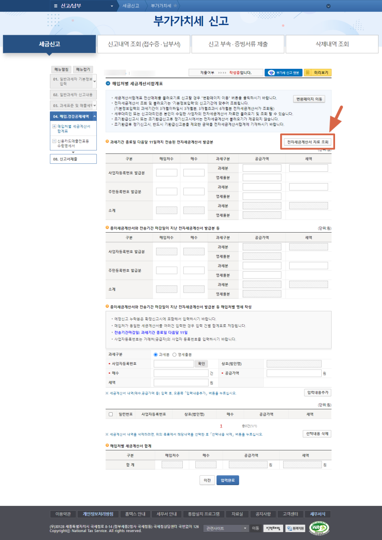 그러면 다음화면에서 전자세금계산서 자료를 조회한 후 매입한 매입한 금액을 입력할 수 있습니다.