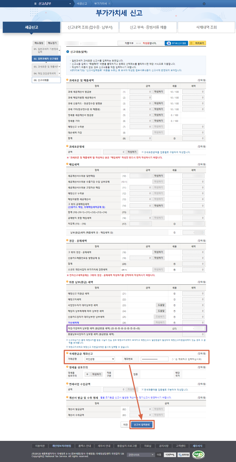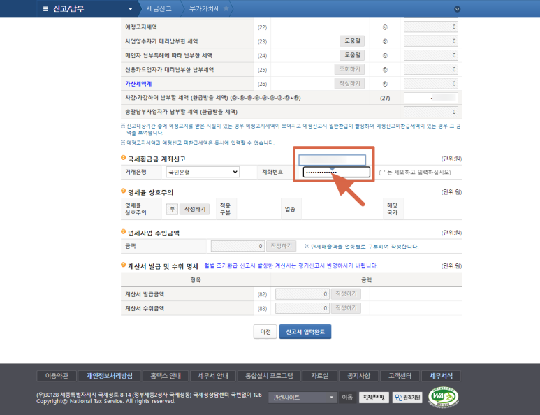 4-3-3. 환급받을 세액 확인 및 환급계좌 입력
