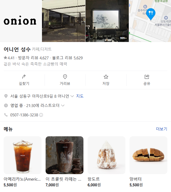 | 어니언 성수 | 폐공장 개조 인더스트리얼 감성 끝판왕 | 팡도르, 플랫화이트 |