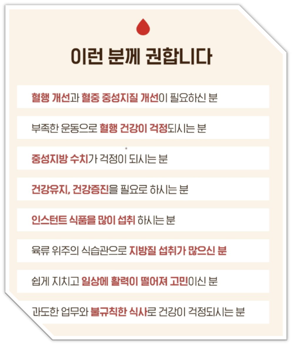 건강검진에서 고지혈증 주의 단계를 받으셨거나, 아침마다 손발이 예전 같지 않다고 느끼신다면 더 늦기 전에 혈관 관리를 시작해 보세요. 하루 1회, 2캡슐을 식후에 물과 함께 섭취하는 작은 습관이 내일의 가벼운 아침을 만듭니다.