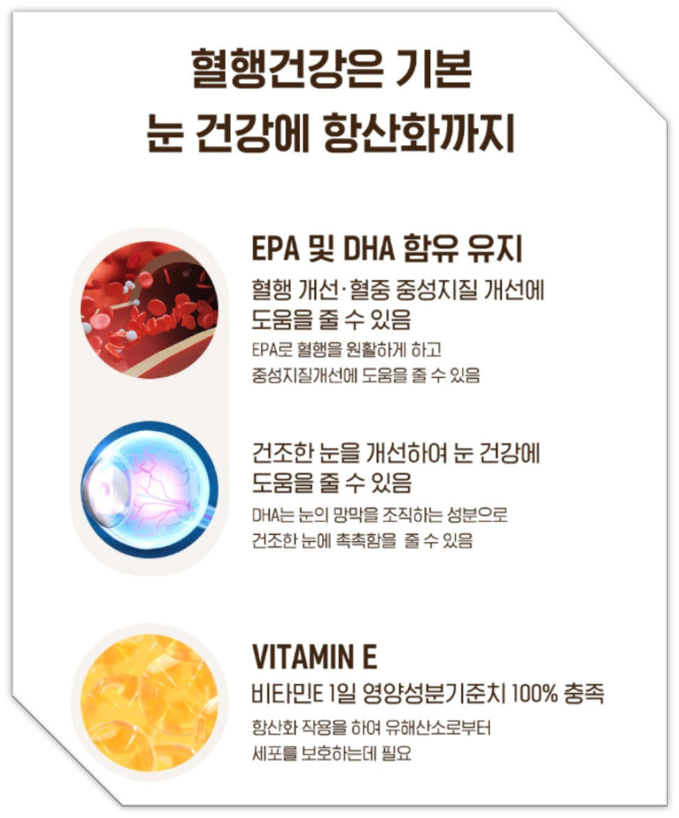 - EPA: 혈중 중성지질 개선, 끈적한 피를 맑게 하는 데 도움