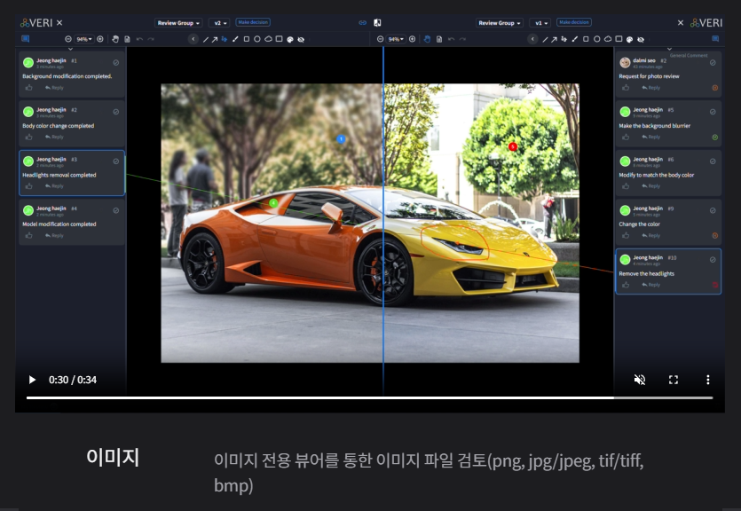 특히 다양한 유형의 산출물을 하나의 플랫폼에서 검토할 수 있다는 점이 VERI의 가장 큰 장점입니다. 문서, 이미지, 동영상, 사운드는 물론 웹페이지와 유튜브 영상까지 실시간으로 검토할 수 있어 업무 효율성을 크게 향상시킬 수 있습니다. 📝🎬🎨