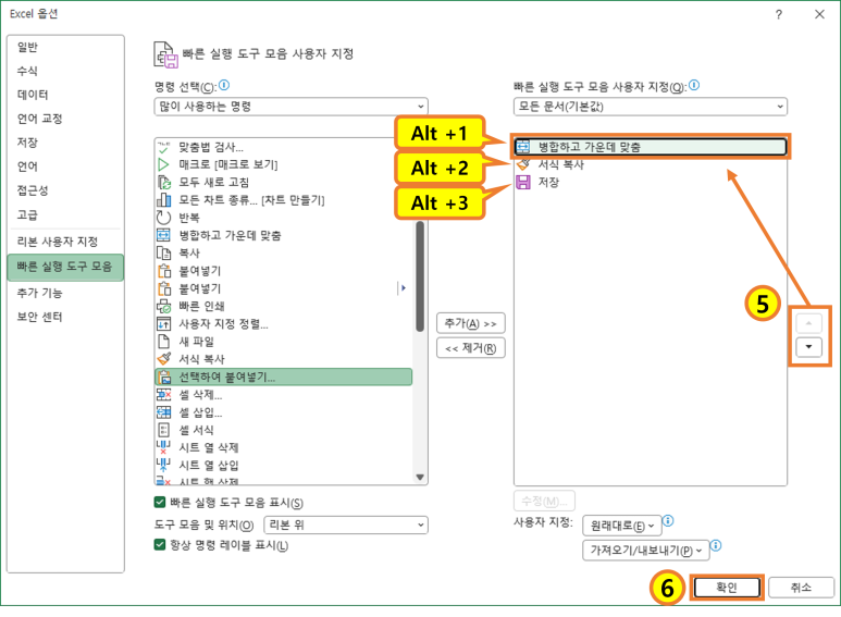 5. 순서설정 (맨 위에서부터 Alt+1, Alt+2, Alt+3 ... 으로 단축키가 됩니다)