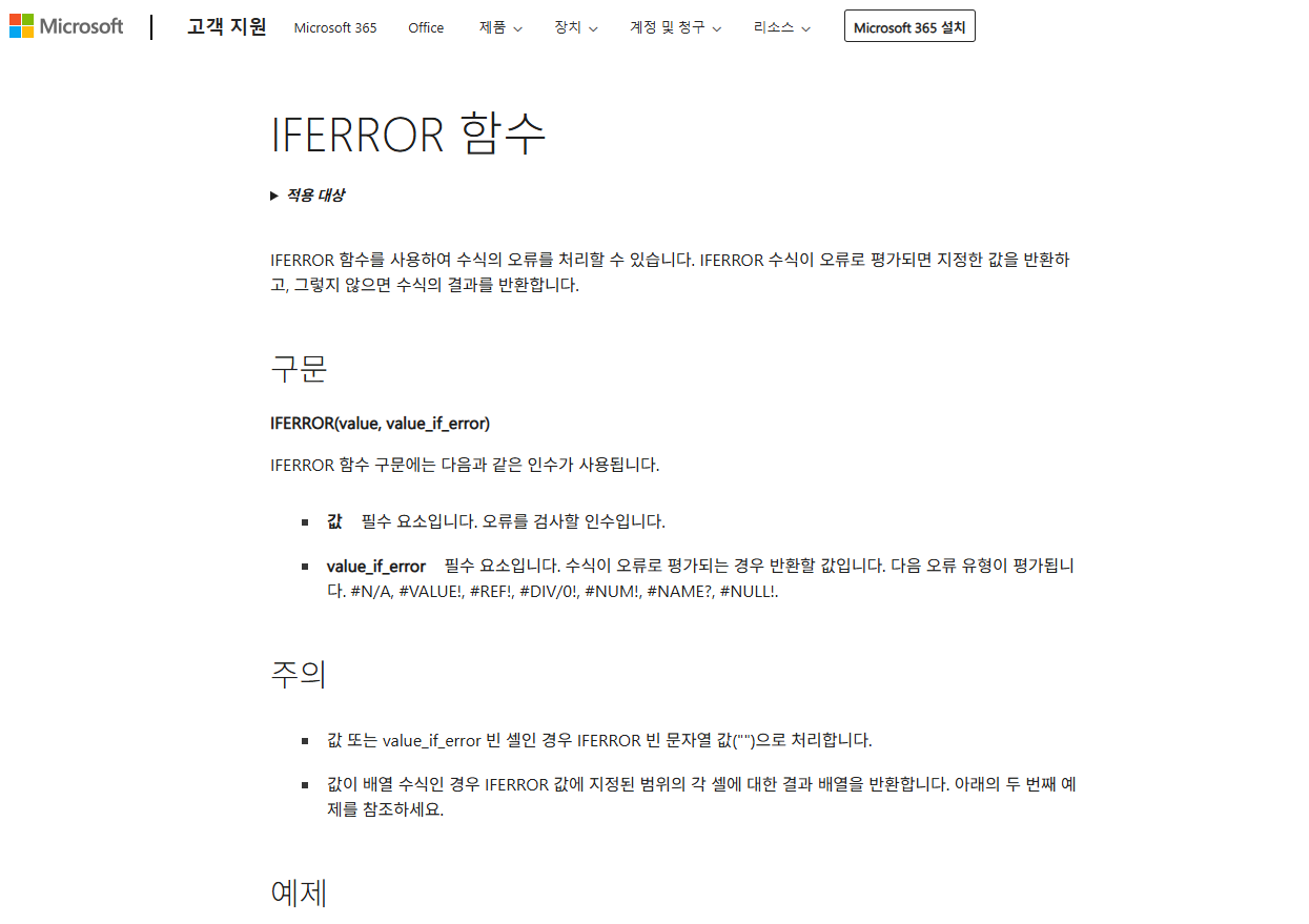 https://support.microsoft.com/ko-kr/office/iferror-%ED%95%A8%EC%88%98-c526fd07-caeb-47b8-8bb6-63f3e417f611