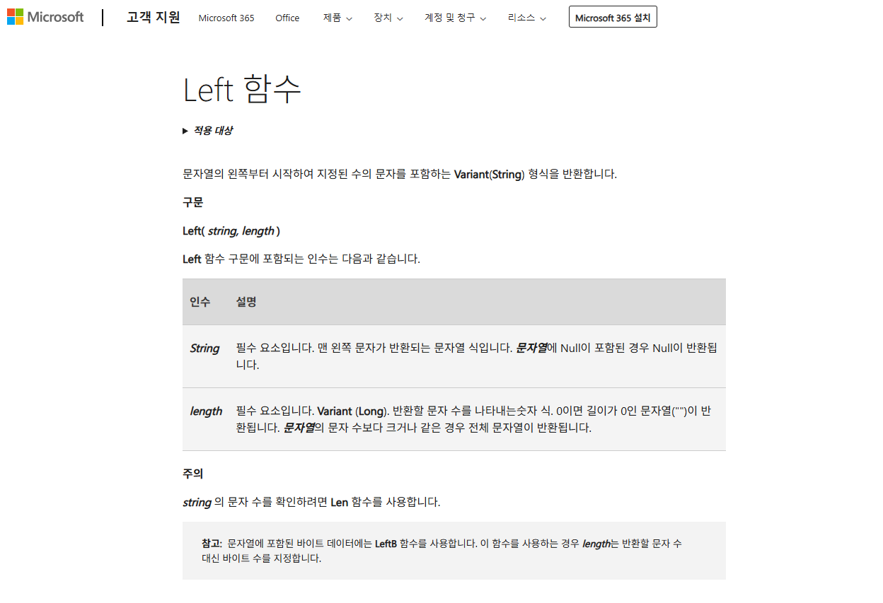 엑셀 LEFT 함수