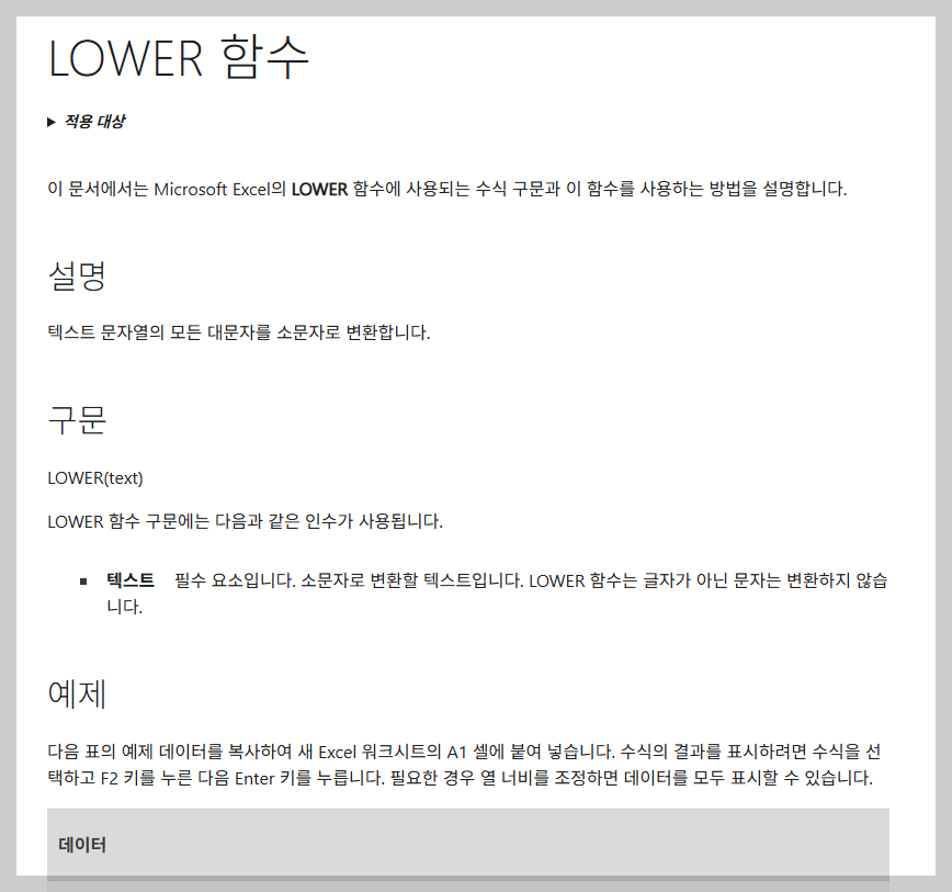 이 공식의 유일무이한 인수 'text'의 역할만 알면 LOWER 함수 사용법은 더 이상 배울 것이 없습니다.