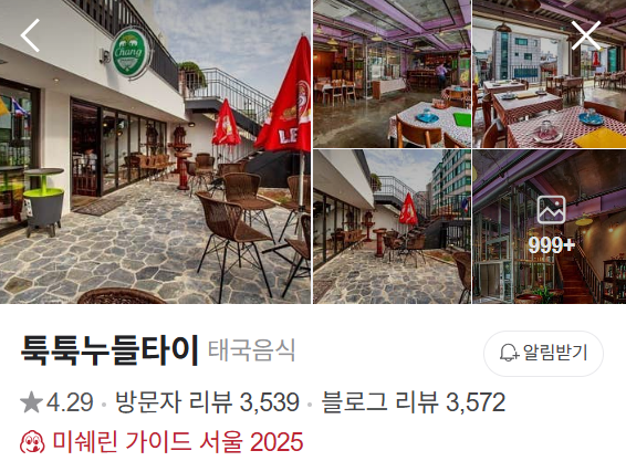 | 툭툭누들타이 | 뿌님팟퐁커리, 똠얌꿍 | 미쉐린 가이드 선정, 현지 느낌 물씬 나는 태국 음식점 (연남동 터줏대감) |