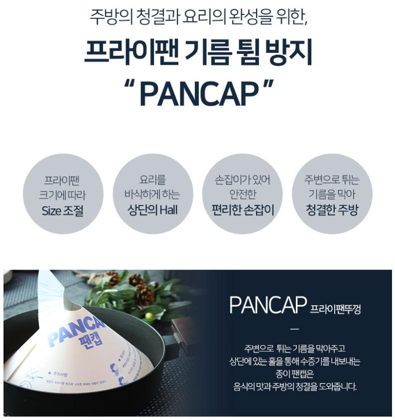 팬캡을 사용할 때 한 가지 주의할 점은 프라이팬보다 크게 하면 가스불에 불이 붙을 수 있다는 점입니다. 반드시 팬캡이 프라이팬 안에 완전히 들어가도록 사이즈를 조절해서 사용해야 안전해요.
