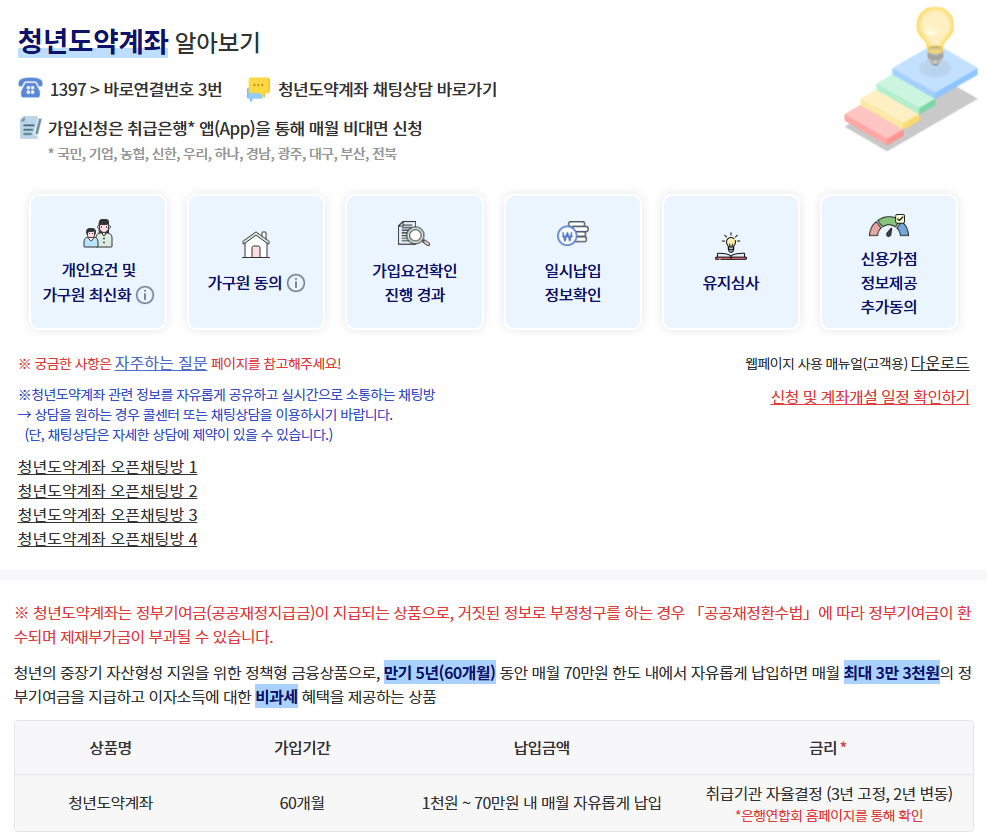 한 줄 요약: 청년도약계좌는 정부가 목돈 마련을 위해 이자와 지원금을 더해주는 최고의 적금 상품입니다.