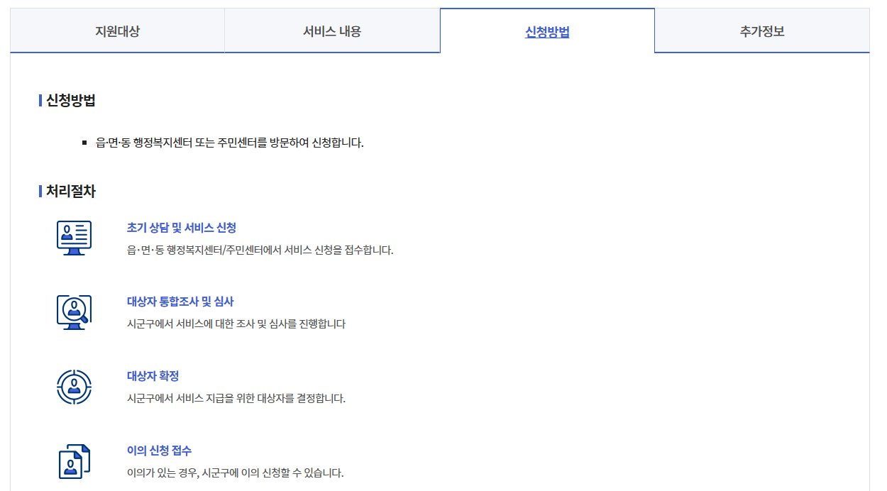 - ✔️ 필요 서류를 구비하여 가까운 행정복지센터(주민센터)에 방문하면 신청 가능합니다.