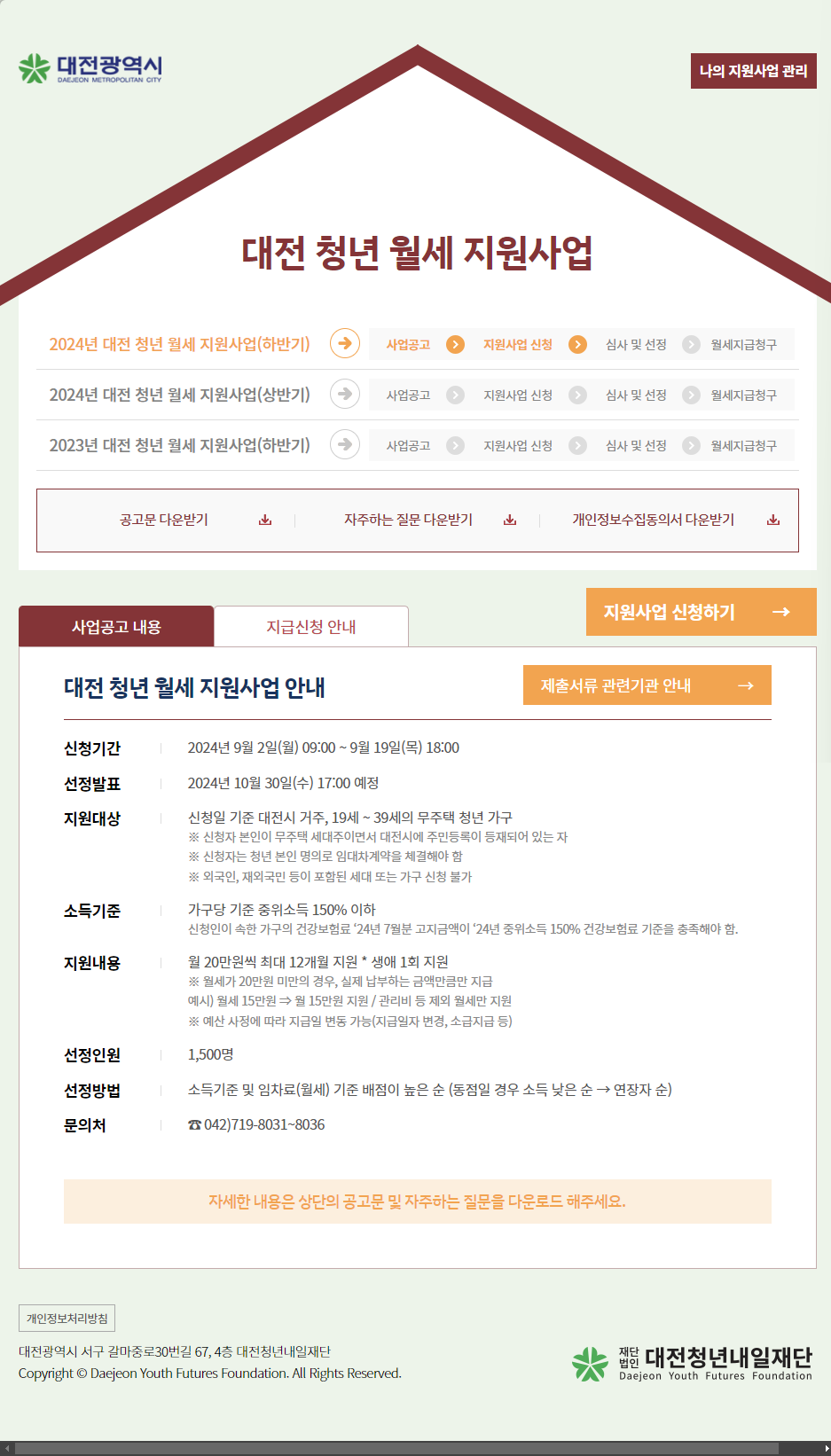- 사업명: 2024년 대전 청년 월세 지원 사업