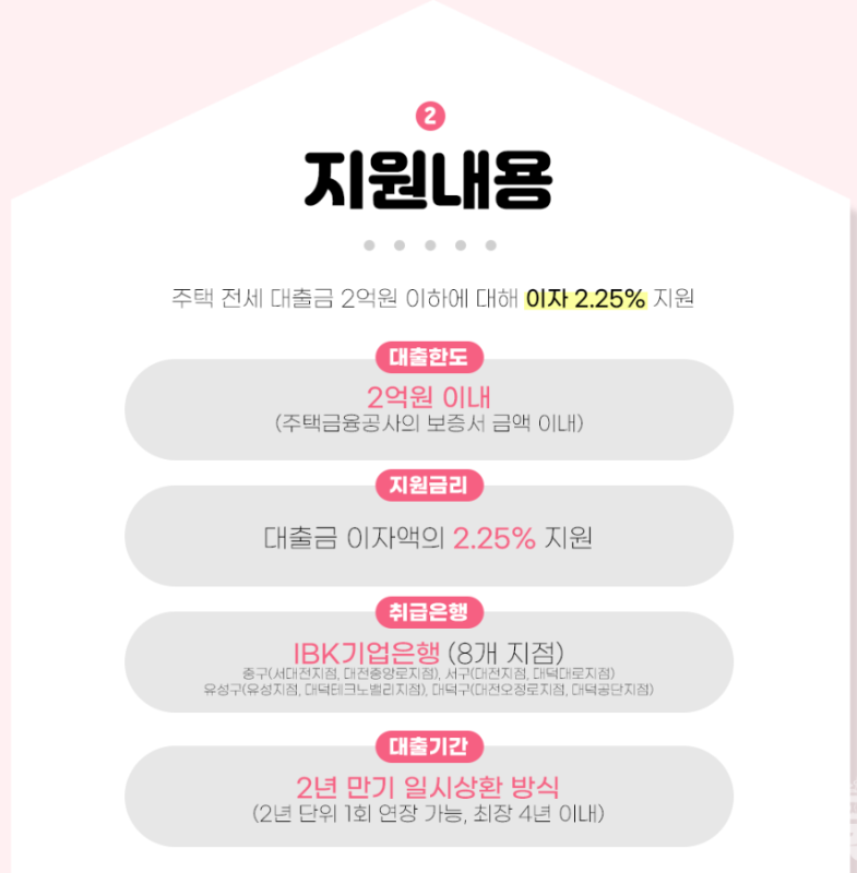 🔸 대출은 2년 만기 일시상환 방식, 2년 단위로 한 차례 연장 가능 (최대 4년 지원)