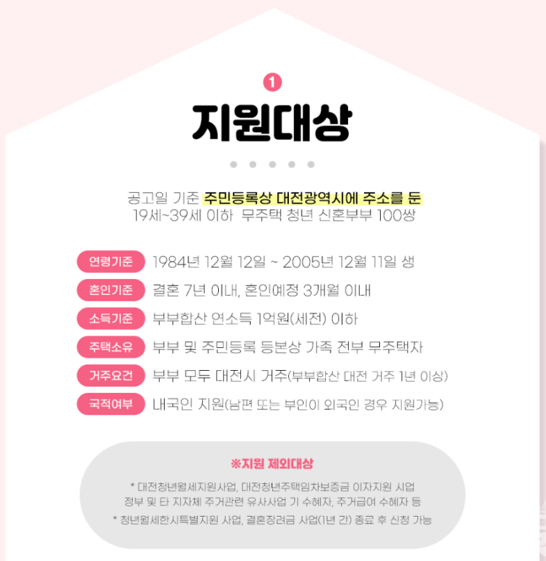 🔸 공고일 기준 부부 모두 19세 이상 ~ 39세 이하 (1984년 12월 12일 ~ 2005년 12월 11일 출생자)