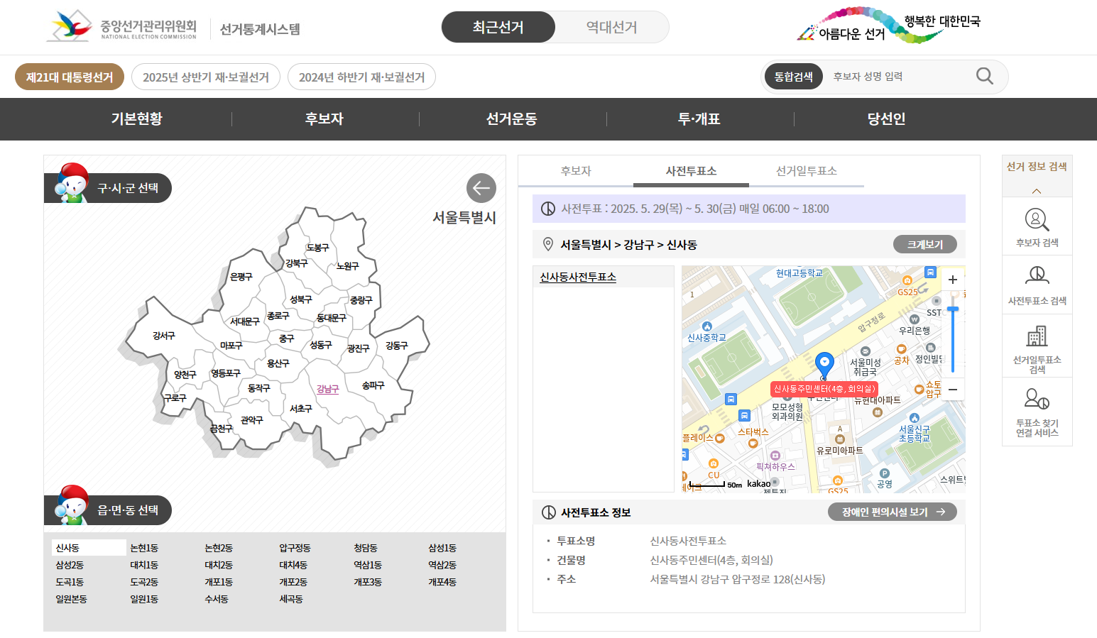 | 중앙선관위 공식 홈페이지 | 정확한 공식 정보 행정구역/주소 검색 |