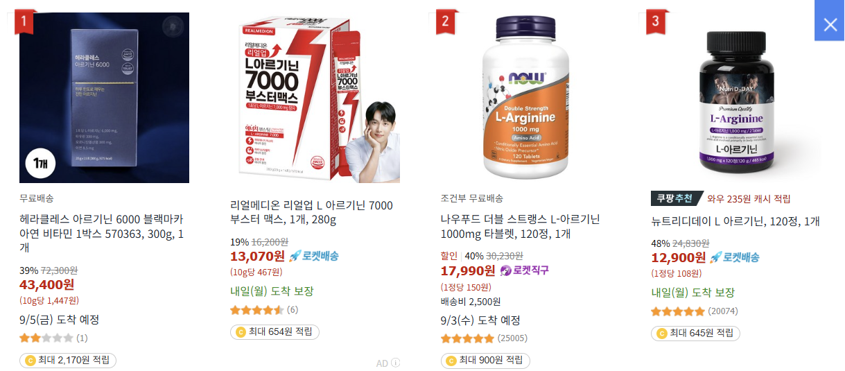 | L-아르기닌 | 활력 증진, 혈액 순환 | 남성성 강화, 운동 효과 증진 |