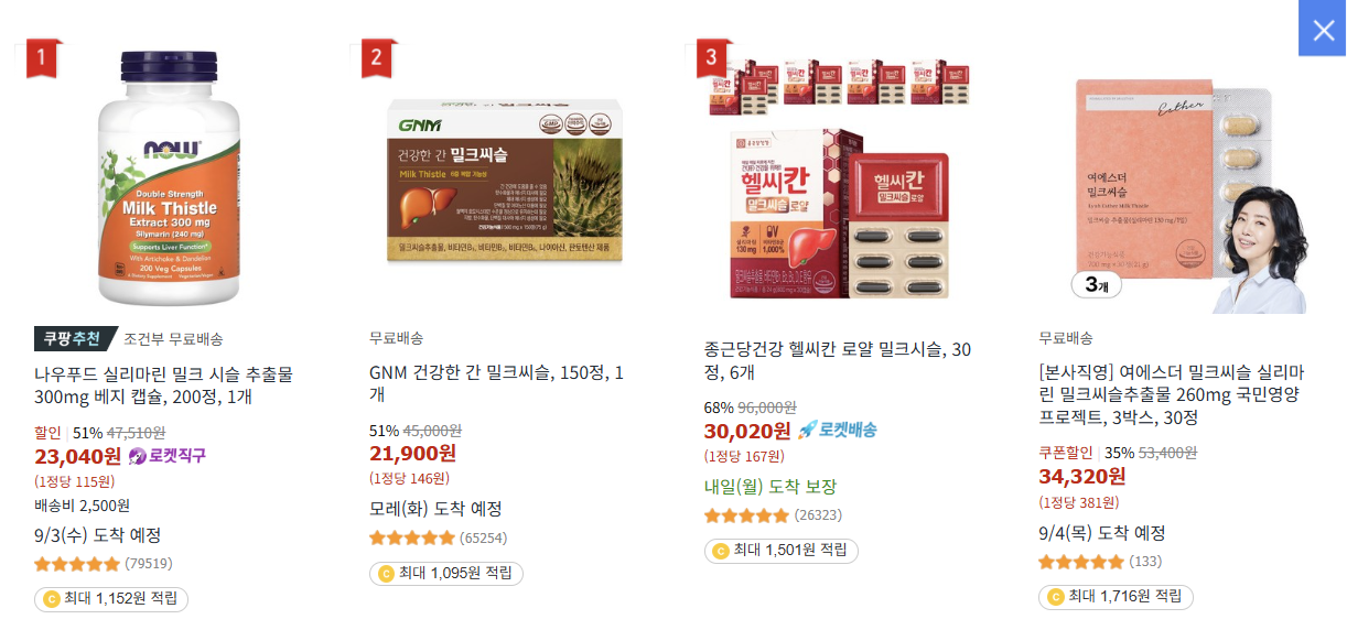 | 밀크씨슬 | 간 기능 개선, 피로 해소 | 잦은 음주, 만성 피로에 시달리는 분 |