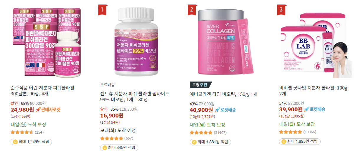 | 저분자 콜라겐 | 피부 탄력, 관절 건강 | 피부가 푸석하고 관절이 뻣뻣한 분 |