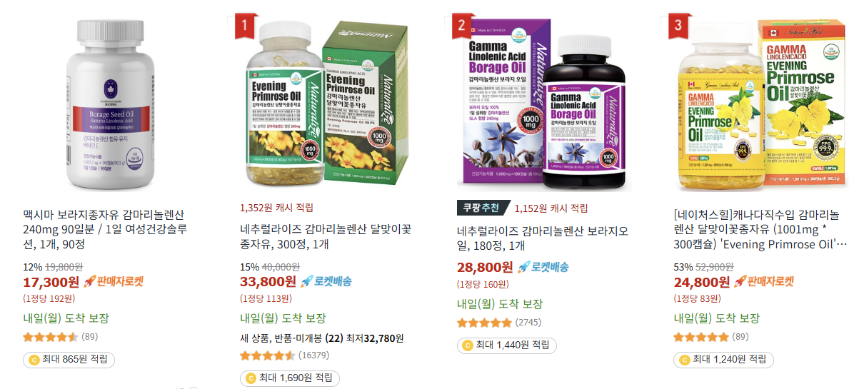 | 감마리놀렌산 | 갱년기 증상 완화, 혈행 개선 | 피부 건조, 콜레스테롤 걱정 |